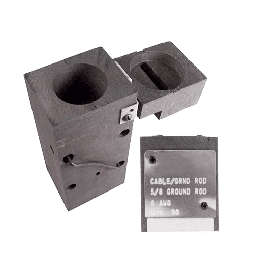 Molde de grafito: sostiene los conductores para soldarTapa: cierra el molde durante la reacciónCrisol: contiene el material de soldaduraAsiento del disco retenedor: en el crisol, sostiene el materialCámara de soldadura: ajusta los conductoresDisco retenedor: permite la reacción exotérmica el tiempo necesario