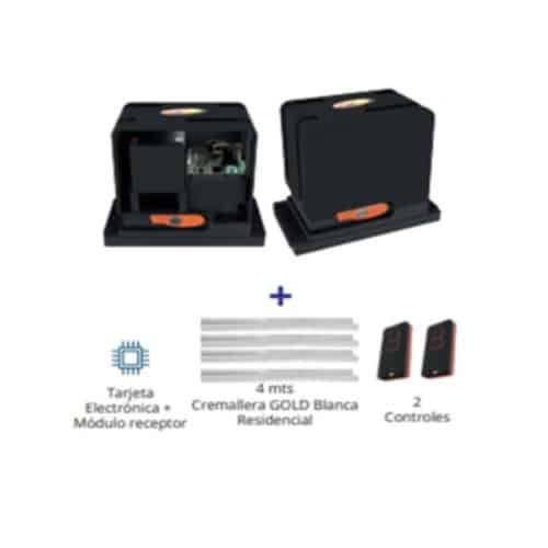 Tarjeta Electrónica + 4 mts Cremallera GOLD Blanca Residencial + 2 ControlesPeso del Portón: 650KGMáximo de Ciclos Hora: 50 / Hora Uso ResidencialTiempo de Apertura: 4 Segundos