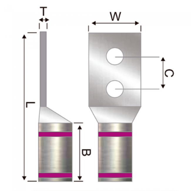Terminal Bimetálica Dos Ojos Barril Largo 2 Awg
